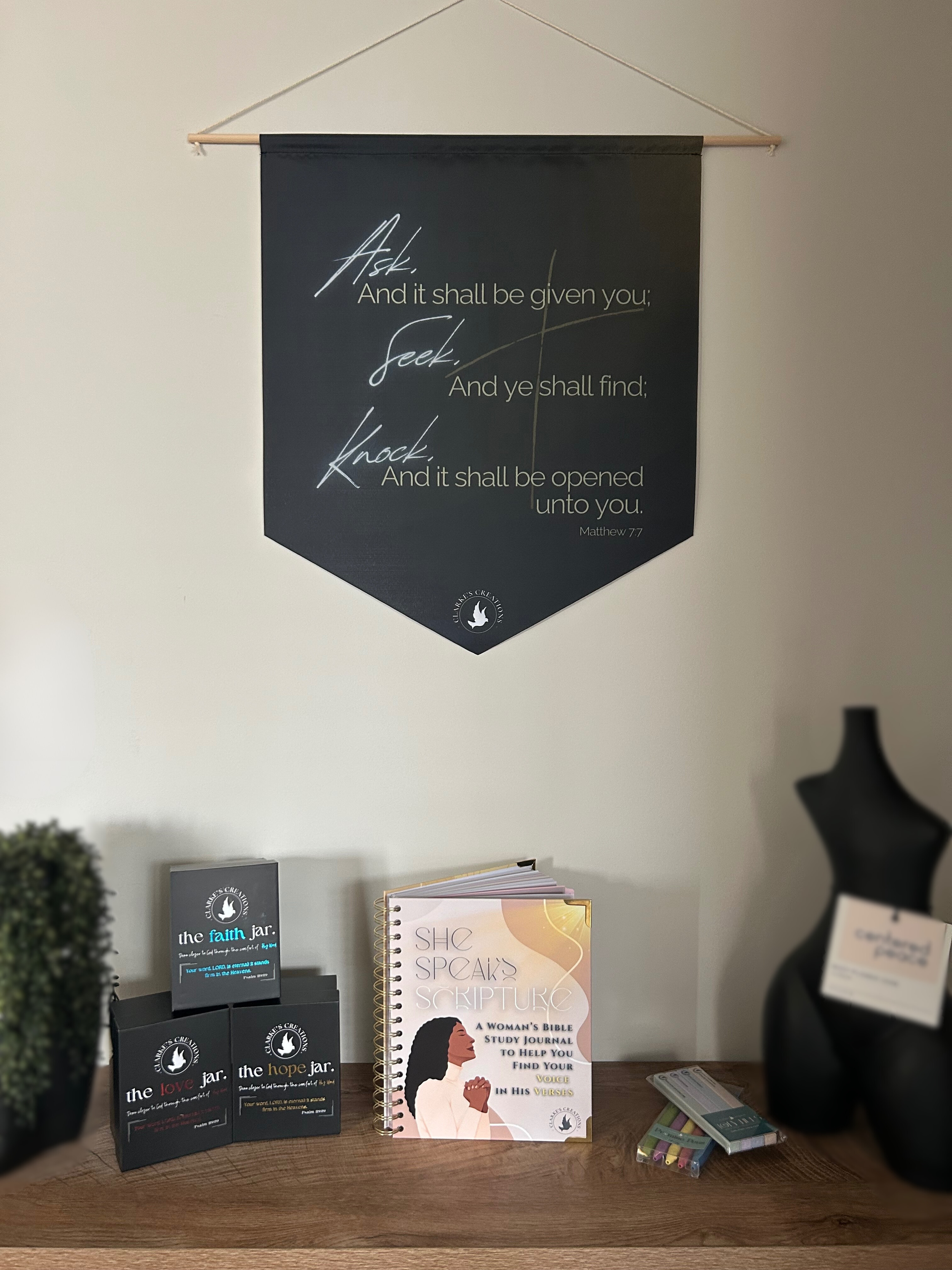 1 Wall Pennant (Psalm 46:10, Matthew 7:7, Isaiah 41:10, Joshua 1:9, Deuteronomy 31:8 or Psalm 143:8)